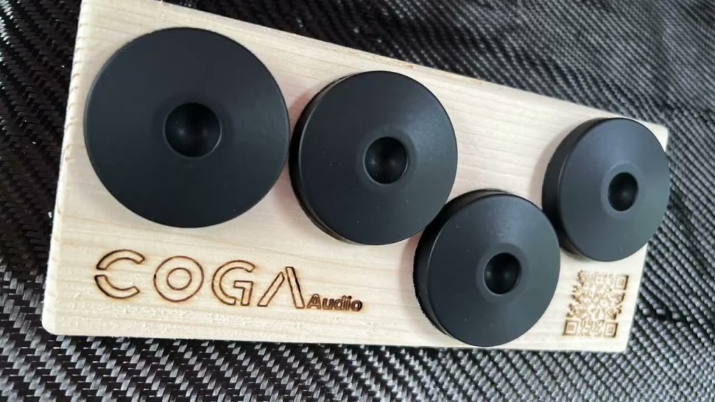 Deuxièmement, la « Composante » est une petite rondelle conçue pour être installée sous les pattes de vos appareils (ampli, lecteur CD, lecteur réseau, DAC, etc.). Comme pour « l’Originale », elle vise à contrôler les vibrations, mais avec un format plus plat et plus large, facilitant le positionnement et améliorant l’assise des appareils.